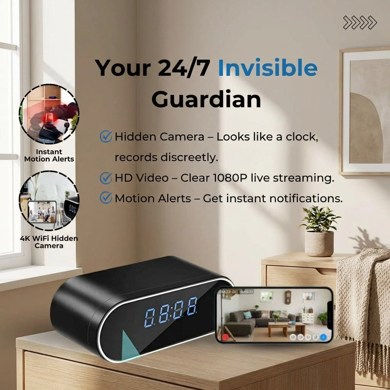 🕰️ Hidden Camera Design – Blends seamlessly into any room